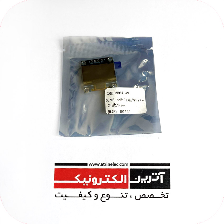 OLED 0.96 inch یک نمایشگر گرافیکی کوچک و کممصرف است که بهجای نور پسزمینه، هر پیکسل خودش نور تولید میکند. به همین دلیل دارای کنتراست بسیار بالا، مصرف برق کم و زاویه دید وسیع است.