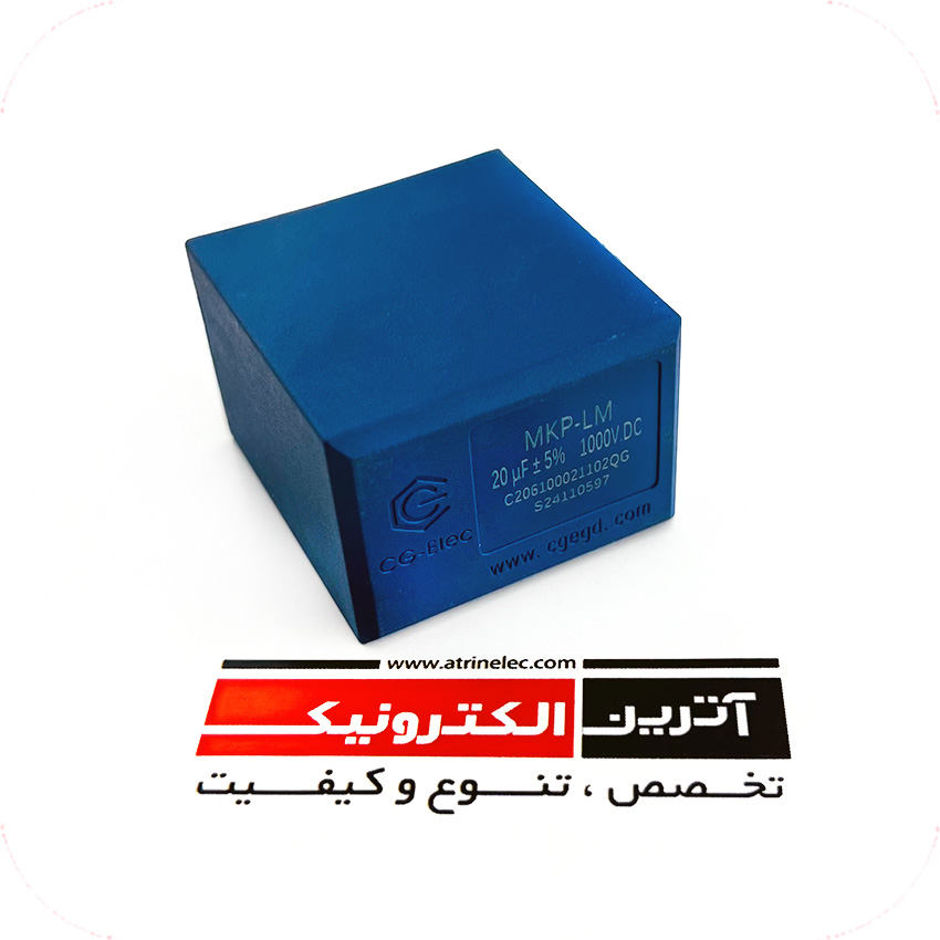 خازن MKP (Metallized Polypropylene Film Capacitor) با ظرفیت20 میکروفاراد و ولتاژ کاری 1000 ولت DC، نوعی خازن فیلمی با پایداری بالا، تلفات بسیار کم و تحمل ولتاژ بالا است.
