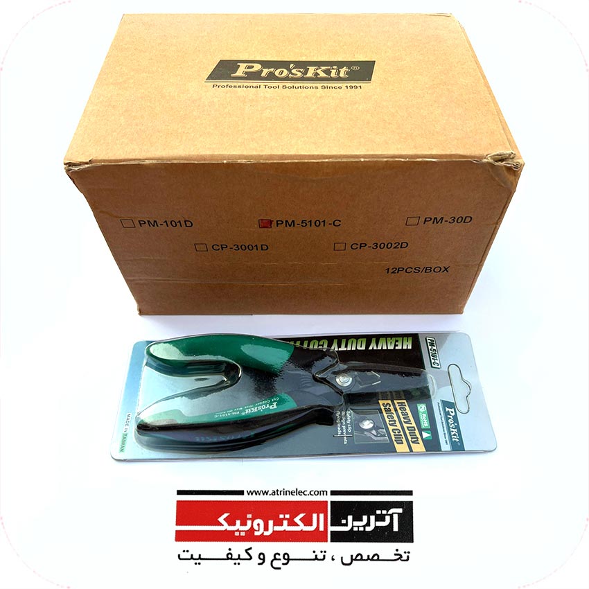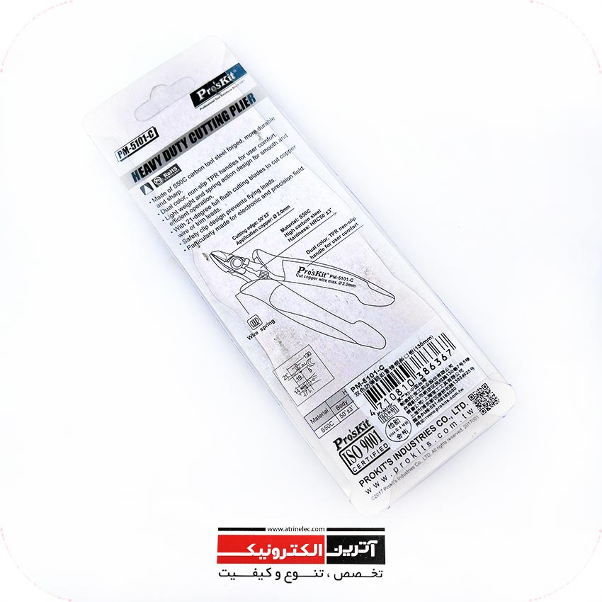 کف چین پروسکیت تایوان -تیغه فولادی با کیفیت S50C -طول ۱۳ سانتیمتر-زاویه ۲۱ درجه با کلیپ محافظ Proskit PM-5101-C Heavy-Duty Cutting Plier with Safety Clip (130 mm)