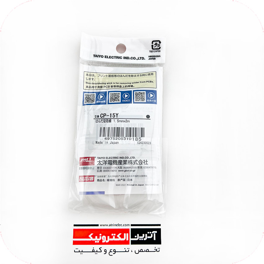 CP-20Y یک سیم قلع‌کش (Desoldering Wick) باکیفیت است که برای جذب و حذف قلع لحیم‌شده از بردهای الکترونیکی استفاده می‌شود. این ابزار ساده اما بسیار مؤثر در تعمیرات، تعویض قطعات، و پاک‌سازی پدهای لحیم، کاربرد گسترده‌ای دارد.