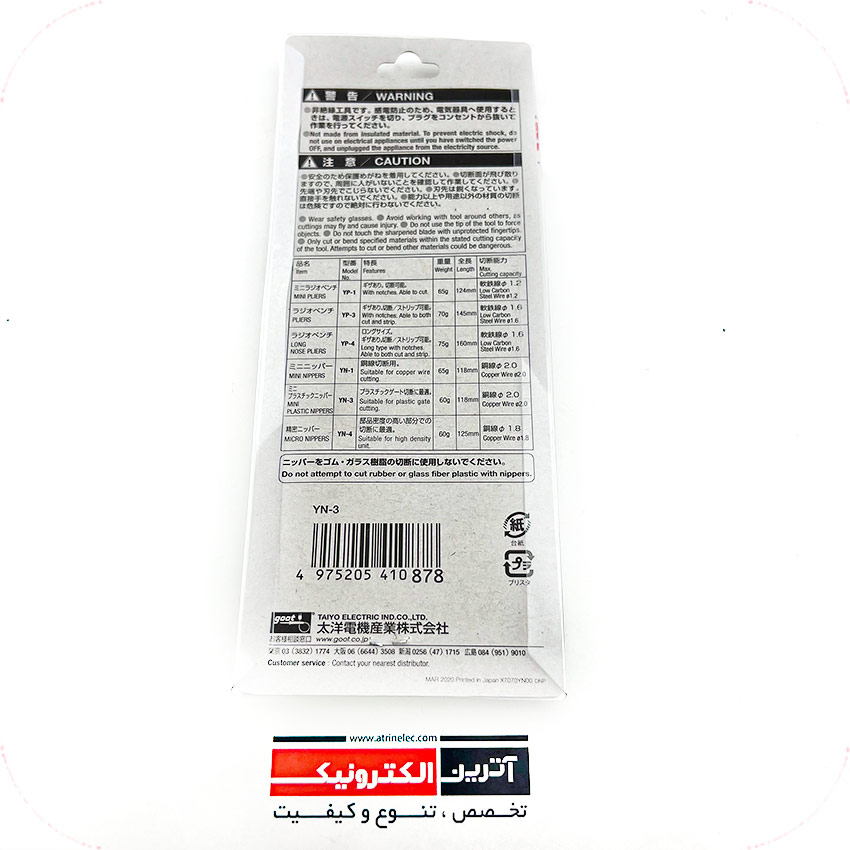 سیم چین GOOT YN-3، ابزار برش الکترونیکی، سیم چین دقیق, سیم چین ژاپنی, goot wire cutter, ابزار لحیمکاری حرفهای